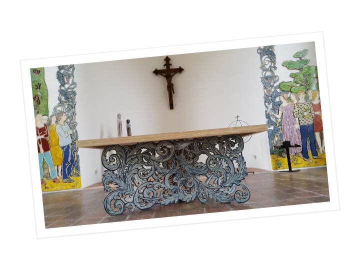 Schichtholzplatte. Bis die Form des Altars so gefunden und realisiert wurde, war ein langer schwieriger Prozeß